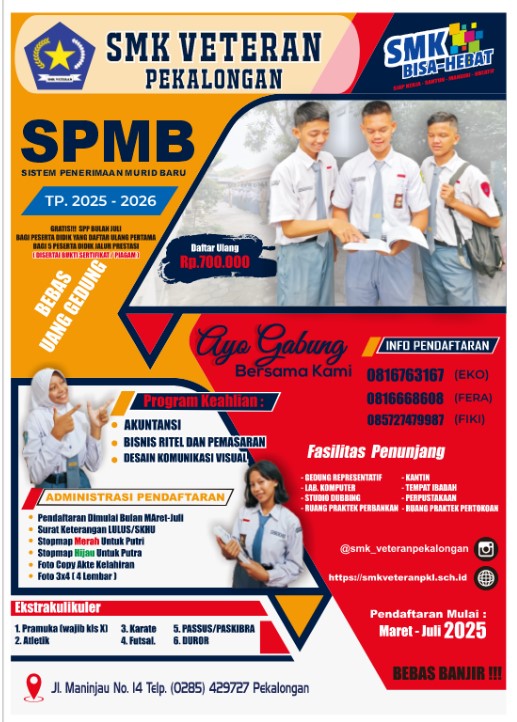 Untuk informasi lebih lanjut bisa datang langsung ke SMK Veteran Pekalongan